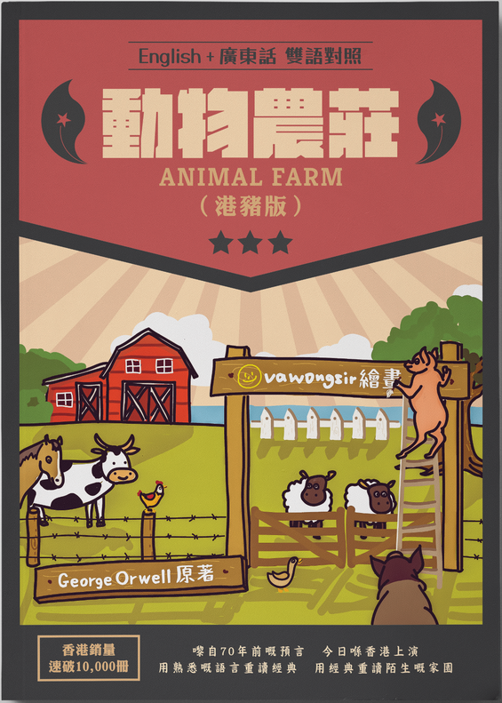 《動物農莊(港豬版)》以香港嘅讀者為本,除咗將George Orwell嘅經典原著翻譯成廣東話外,亦不避香港獨有嘅俗字俗語,務求反映香港人混雜嘅文化同語言。當然仲有香港漫畫家vawongsir嘅盞鬼插畫,令全書更加啜核傳神。