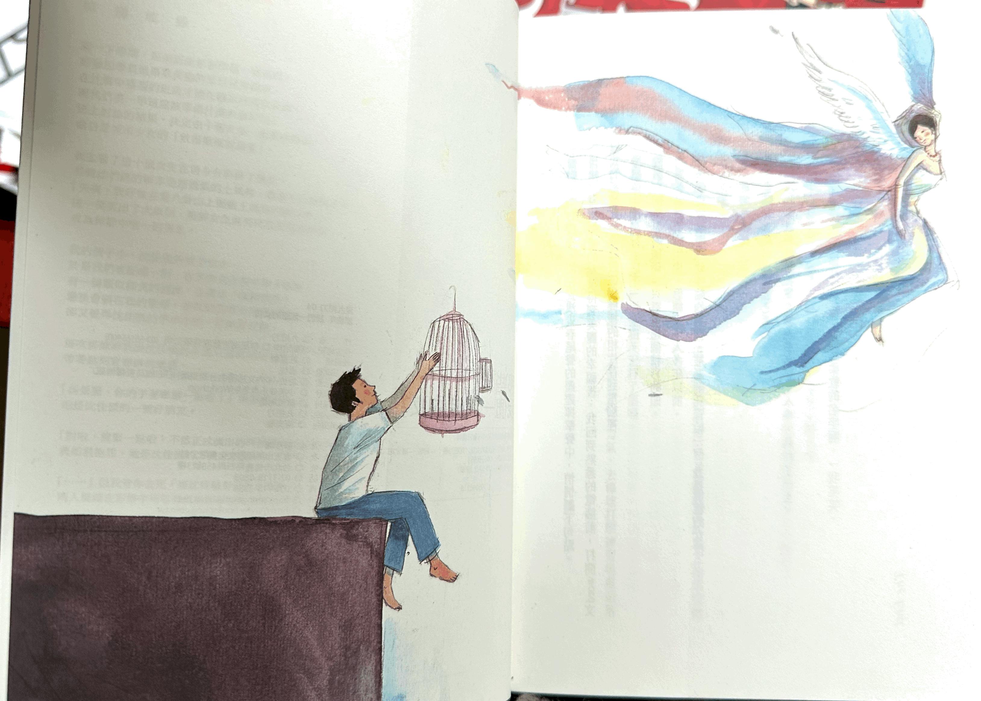 「白天教室裡,我開始做一些很奇怪的事,例如在抽屜裡種花,把考卷撕成細碎的紙片當雪花到處亂灑在同學頭上。此外,我老是在找人陪我到走廊外打羽毛球,流流沒有聯考壓力的汗。」