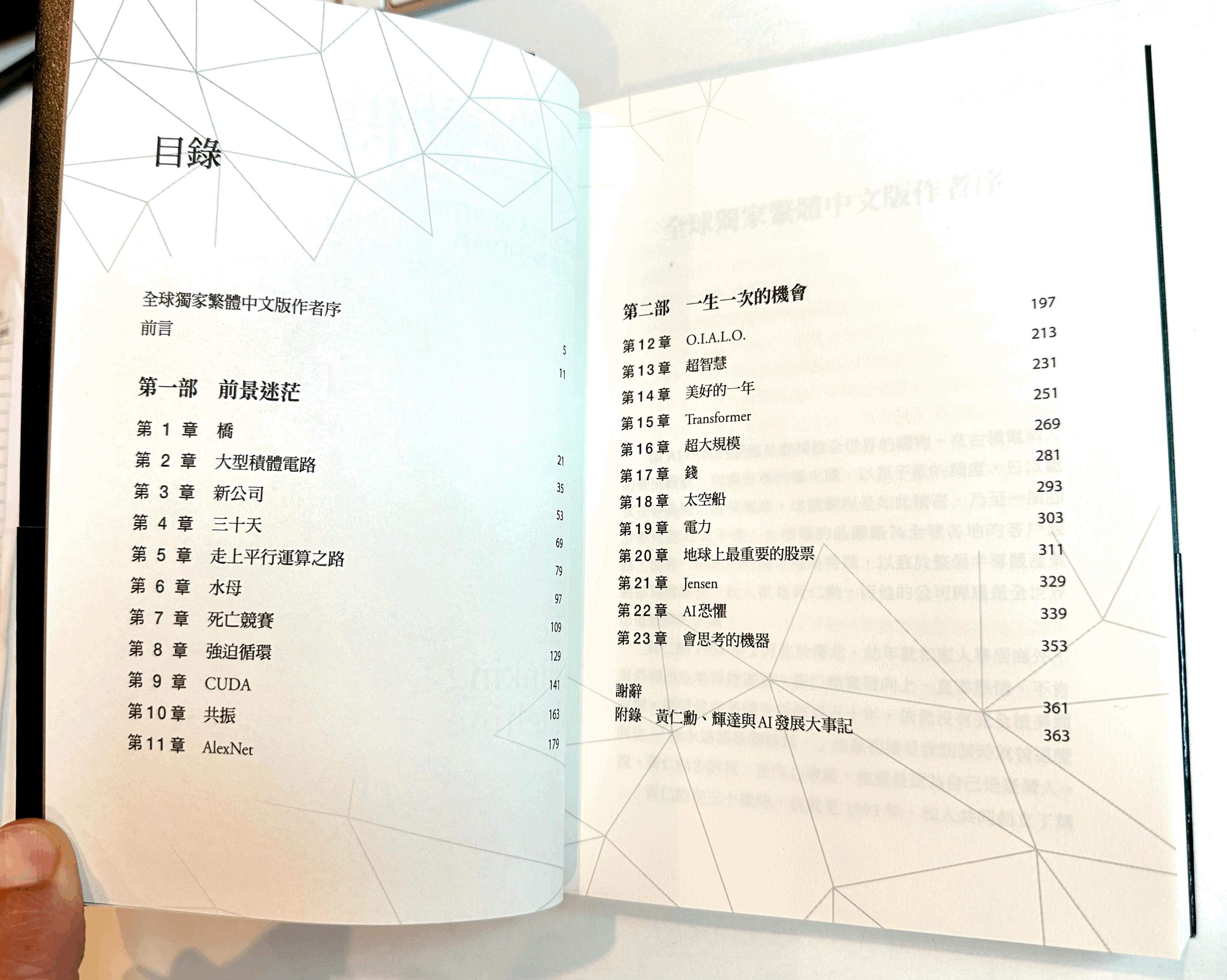 《黃仁勳傳》細數輝達如何從一間生產電路板配件的公司,成為價值數億美元超級電腦的供應商,站上科技霸主地位。本書描述固執的企業家不顧華爾街的質疑,堅持提升運算能力,終於登上全球富豪榜的故事。這也是電腦架構改革的故事,描述一小撮叛逆的工程師如何發動這場變革。更重要的是,這也是關於AI未來的故事,也就是黃仁勳所說的「下一次工業革命」──創新晶片技術將帶來超擬真的虛擬化身、自主移動機器人、自駕車,以及隨需生成的新型電影、藝術與書籍。
