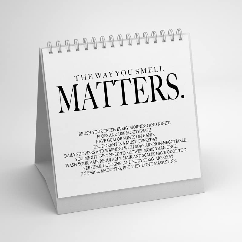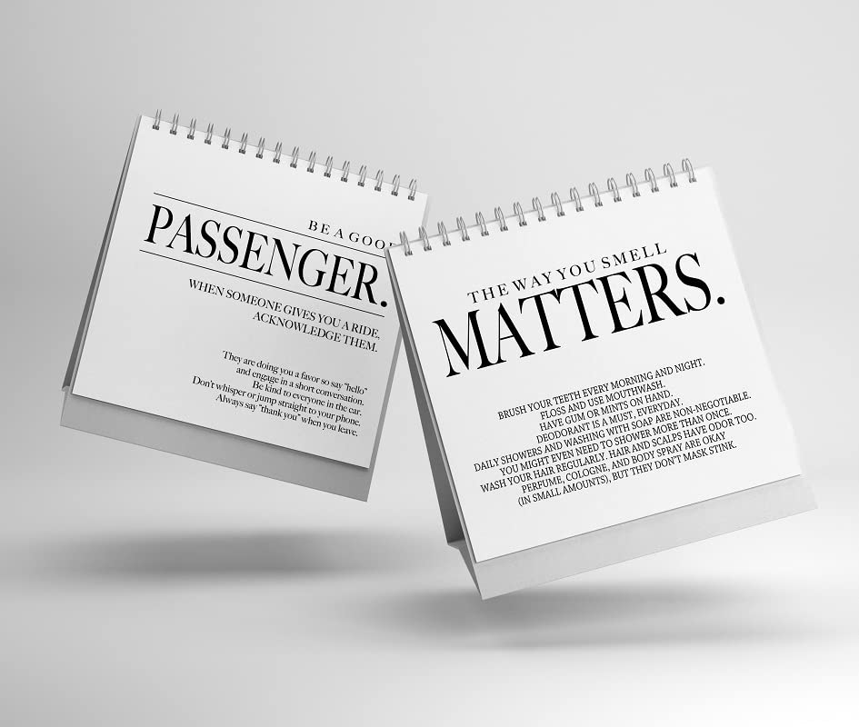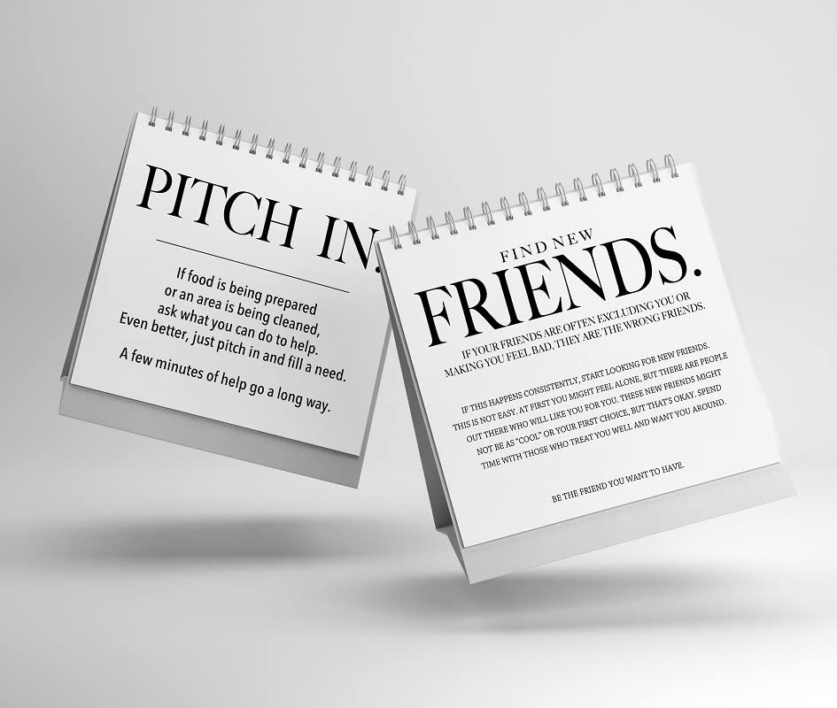 The innovative design is a stand-up, flip calendar with the main manner on the front and more details on the back. It serves as a visual reminder all week of how to interact or allows more stubborn teens to learn casually on their own. The manners are short, direct, and to the point, and include the why behind each one.