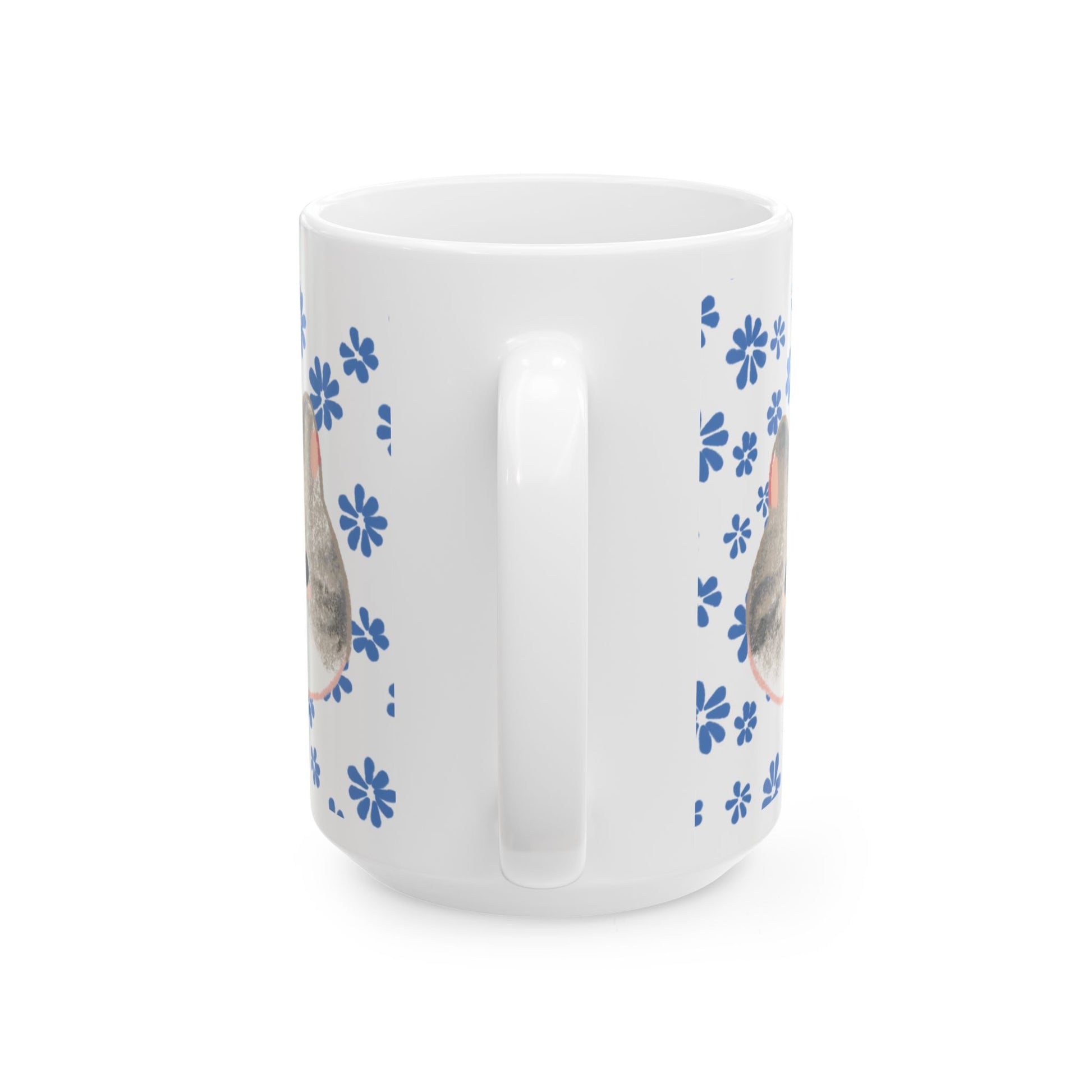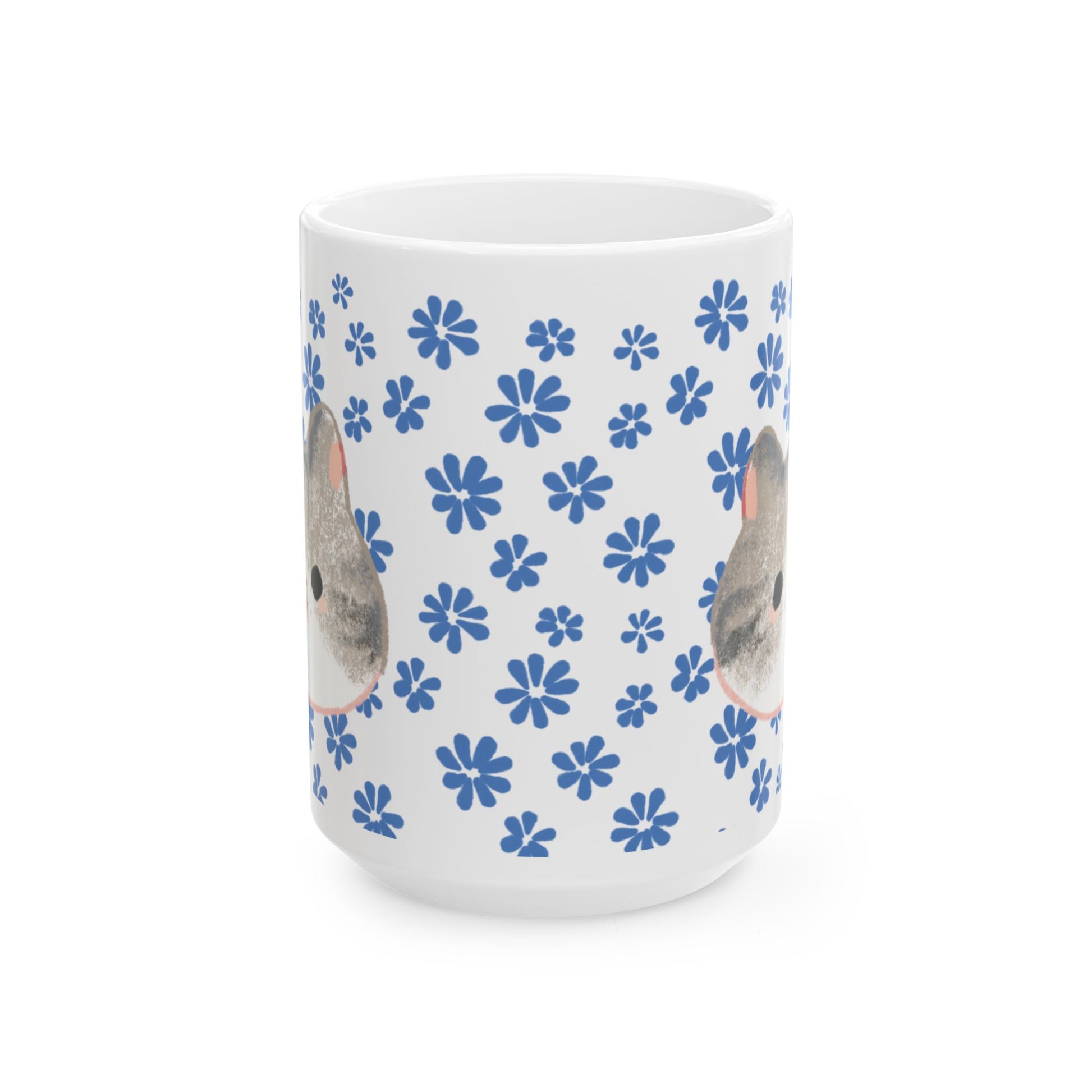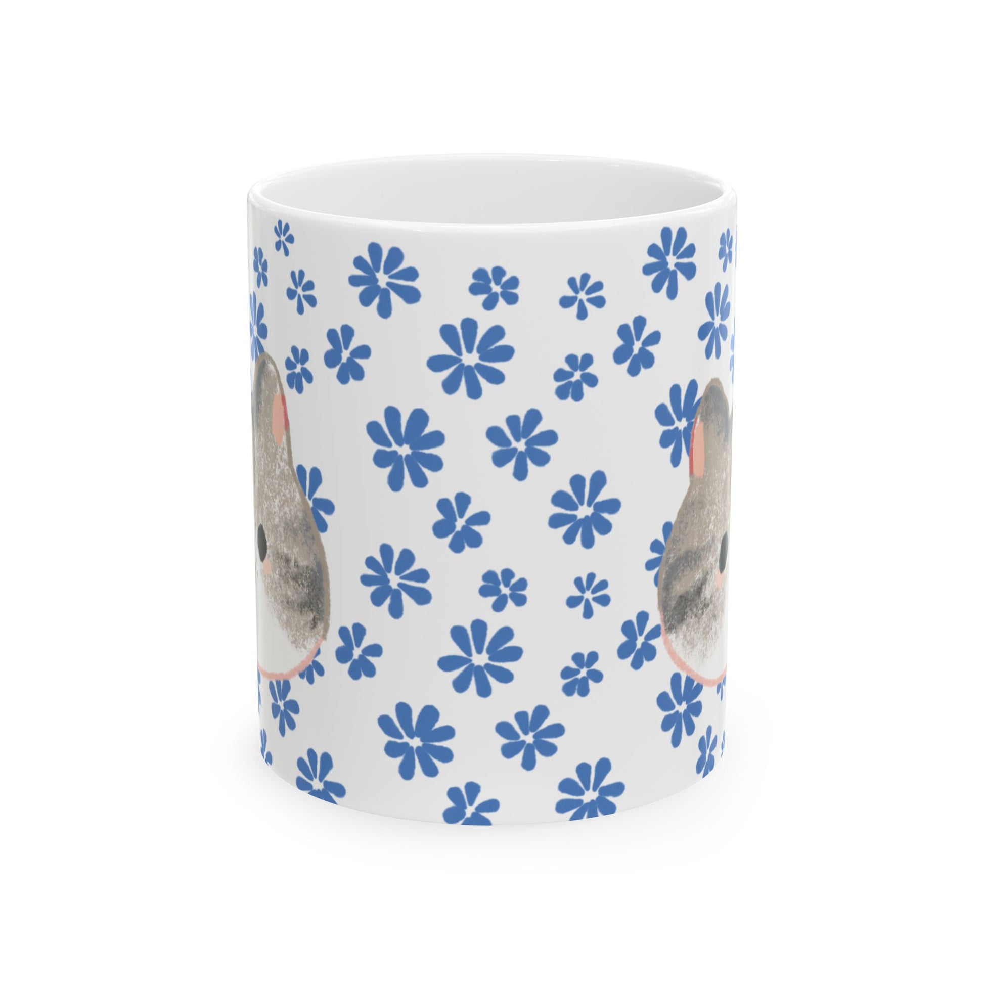 Bright mornings start with a gentle, familiar face. This glossy ceramic mug wraps a soft, watercolor-style bunny portrait in a scatter of hand-drawn blue flowers. Sipping tea or coffee becomes a calm, cozy ritual—warmth in your hands, a shy nose peeking from the rim, and a tiny pattern that feels like a sunny windowsill. The clean white base keeps the design crisp and cheerful, and the comfortable C-handle keeps your grip easy during slow mornings or busy desk hours. Dishwasher- and microwave-safe, lead- and BPA-free, it’s built for everyday use while cherishing quiet moments and little comforts.