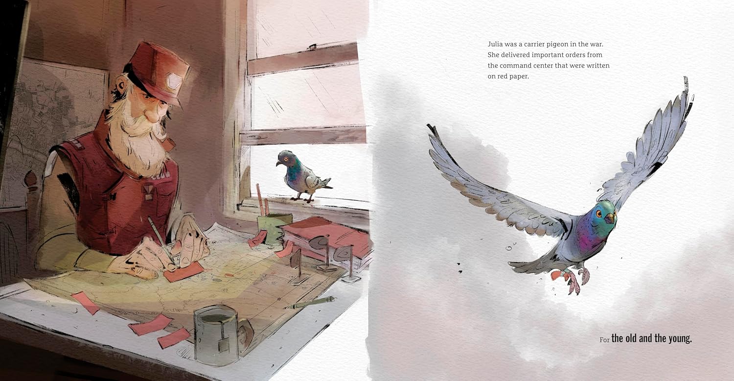 Julia, a carrier pigeon, delivers messages to the battlefield. But she also has a secret mission. Even though the Red Jackets and the Great Coats are at war, Julia helps the soldiers on both sides play a special game to bring each other some joy during the holiday season.